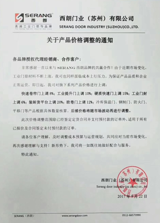 环保风暴来袭原材料持续上涨西朗工业提升门、工业快速门、工业卷帘门不调不行啦