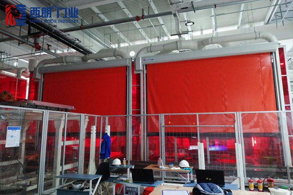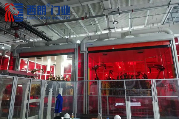 首先,在设备房里有很多机械设备同时在运行,拉链快速门能够和设备进行联动,通过控制系统识别信号源的方式,门帘开关自如;其次,设备在工作时会有铁削等物质喷射出来,安装拉链快速门对空间起到密闭的作用,门帘降落后能够实现全密闭的空间,既防止里面的物质飞出,也防止外面的灰尘、杂质进入;另外,工作人员需要进场进出设备房里操控设备,拉链快速门的突出优势就是能够快速开启、频繁开启,一天开启800次左右都没有问题。最后,它的优势是具有防撞的自动复位功能,两个设备在运行时难免会出现故障,但是我们的门帘发生故障也不用特别担心,它会自动脱轨后恢复到正常运行位置,继续工作。
