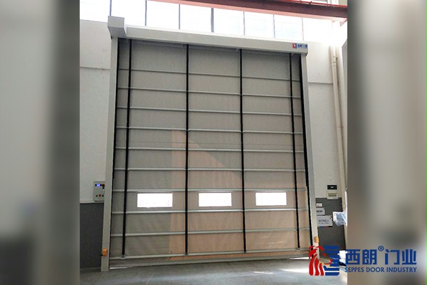 堆积快速门是工业快速门的一大分支,它与快速门相比有两大优势:一是可以订制很大尺寸,应用在厂房外部;另一点是它的抗风性要比快速门强很多,可以应用在一些沿海地区受台风侵扰的厂房。