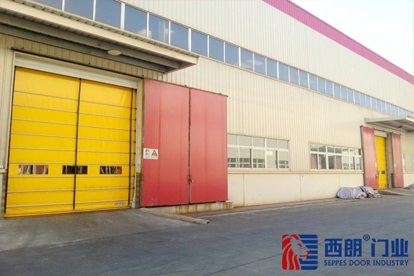 西朗制造的大型快速堆积门由抗风平衡装置组合门体、提升驱动系统、导向密封系统、电控系统等构成。适用于大型库房、厂房车间、飞机库、船坞等场合。具有安全可靠,开启轻便等特点。可通过特殊构件设计,组合成任意尺寸的超宽开间。大型柔性堆积门的快速启闭功能提高了夏冬季节的冷暖保温效果,减少了热传递中的能量消耗,节约能源。快速柔性堆积门底部装有弹性的PVC基布气密封,它可与各种不平坦地面精密结合,可达到万级标准,门柱密封采用特有的双层毛刷增加了更好的密封性。