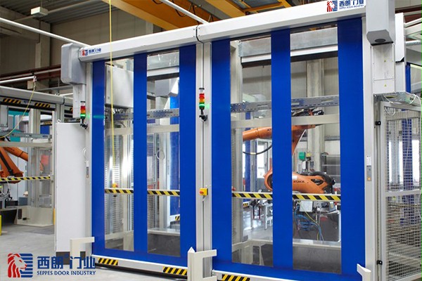 很多企业会用铝合金材质在厂房内搭建一个机器人焊接间,在机器人焊接间安装防护快速门可以让厂家节约投资成本,又减少了金属等弧光对工作人员的伤害。上海西朗门业生产的防护快速门可以具备多种功能,既能防止飞溅物喷射,防激光、防弧光、还能配合机器人等生产设备正常工作,应用在焊接间里不会占用过多的空间,而且进出方便快速。