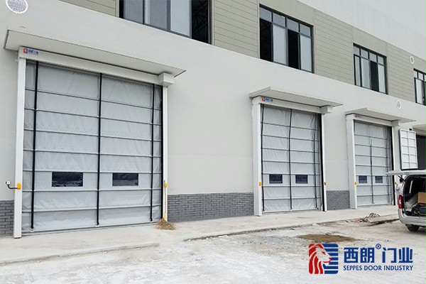 超大快速堆积门、折叠门,适合大型车间及超大内部环境阻隔封闭,门帘由轻质尼龙纤维织物及钢质抗风杆组成,抗风能力强,阻隔面积大,防尘、防虫,保温。西朗门业上海快速堆积门也称背带式堆积门、堆叠式快速门,顾名思义,门帘是分层堆积的上升方式,阻隔和封闭效果是工业门的首选。