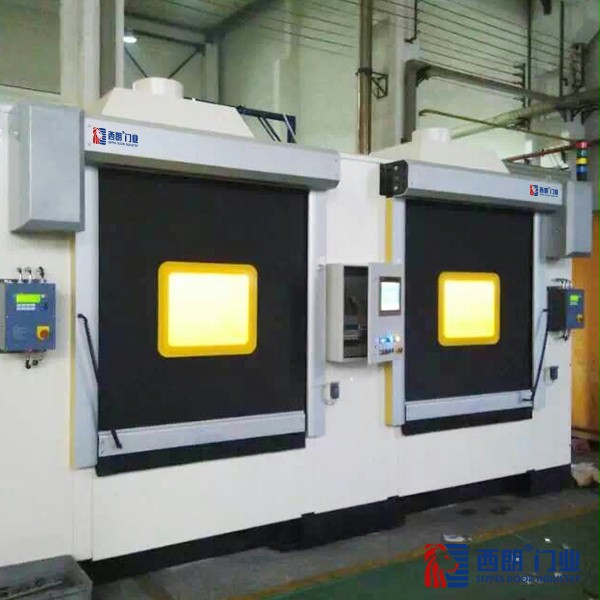 焊接防护型上海快速门可与焊接机器人通信,自动模式开闭,有效的隔离工作人员在机器人焊接时产生的有害光,焊渣,烟气及颗粒物,大幅度的提高了生产量,净化了工厂的作业环境,以保护工人身体健康。