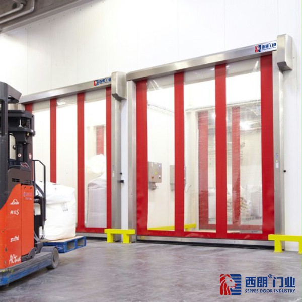 既美观、耐用、良好的密封效果、有效的阻隔异味传出,门柱两侧及顶部装有优异密封材料,可减少噪音及增加密封效果,互锁快速门可以有效的节省能源。