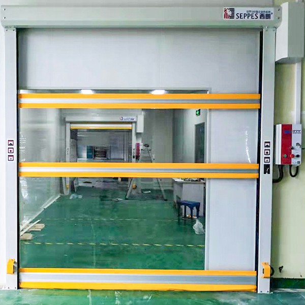 维持气锁室10帕正压的快卷门具有很快的速度,开关速度在1.0-2.0(可调)米/秒。快速的开闭也可以辅助保证室内外的空气间的交流少,不会带来污染;并且日常的开关进出装卸货,效率也很高。