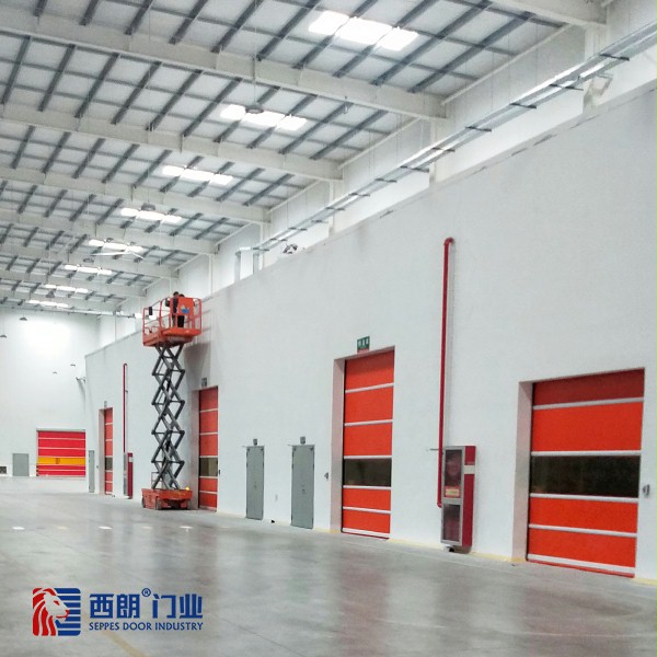4、效率高。高速开闭(开启速度是普通卷帘门的10倍以上),减少了车辆出入时的等待时间,而且复位、修理简便,万一车辆撞上门帘,也能在较短时间内恢复正常。