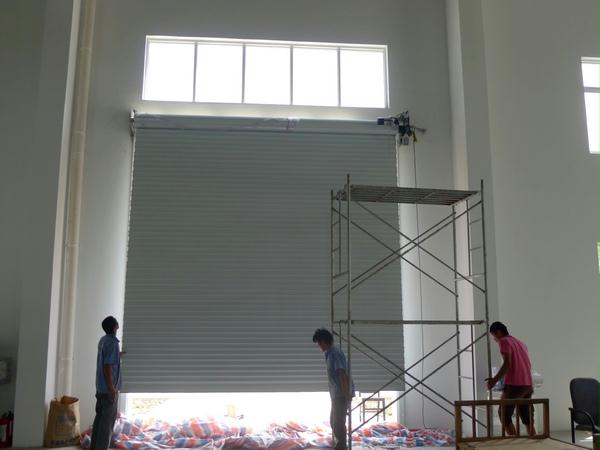 上图:刚刚安装完毕的一樘77铝合金卷帘门