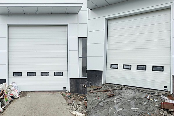 值得一提的是,鉴于上海提升门不宜频繁开启的特点,这樘门特别设计了小门。在人员进出较多但无需大型设备或车辆通行时,员工可通过开启小门满足日常进出需求。这样既避免了提升门频繁开启,减少了门体磨损,延长了使用时长,又保障了人员进出的便捷性,提高了工作节奏。