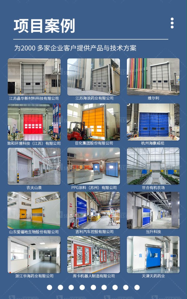 堆积快速门的门帘是通过背带提拉折叠向上提升的,所以也被称为:背带式堆积门。快速堆积门是在pvc快速门的基础上优化了抗风效果,门帘上设计多条内置横向抗风杆,使风压可以均匀的分布到帘整体,最高能达到11级风。