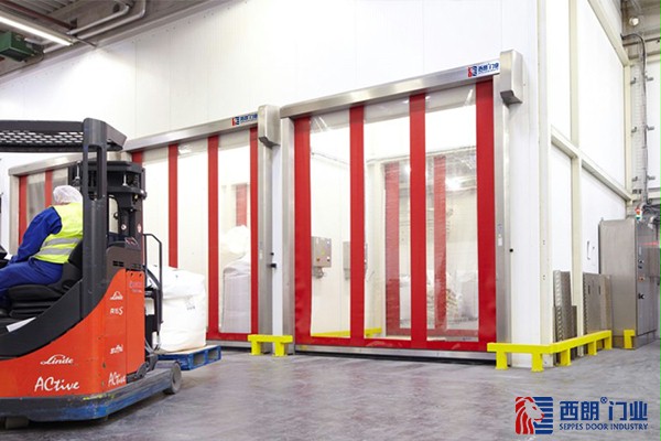 既美观、耐用、良好的密封效果、有效的阻隔异味传出,门柱两侧及顶部装有优异密封材料,可减少噪音及增加密封效果,互锁快速门可以有效的节省能源。