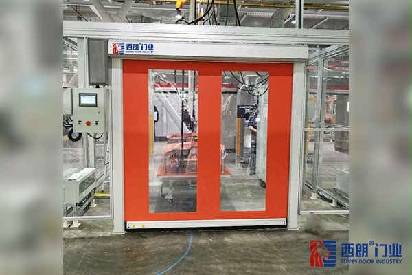 互锁快速卷帘门可实现有多种功能,例如可和设备进行联动,各种冲压设备进行防护作用,以及AGV小车进行配合使用。